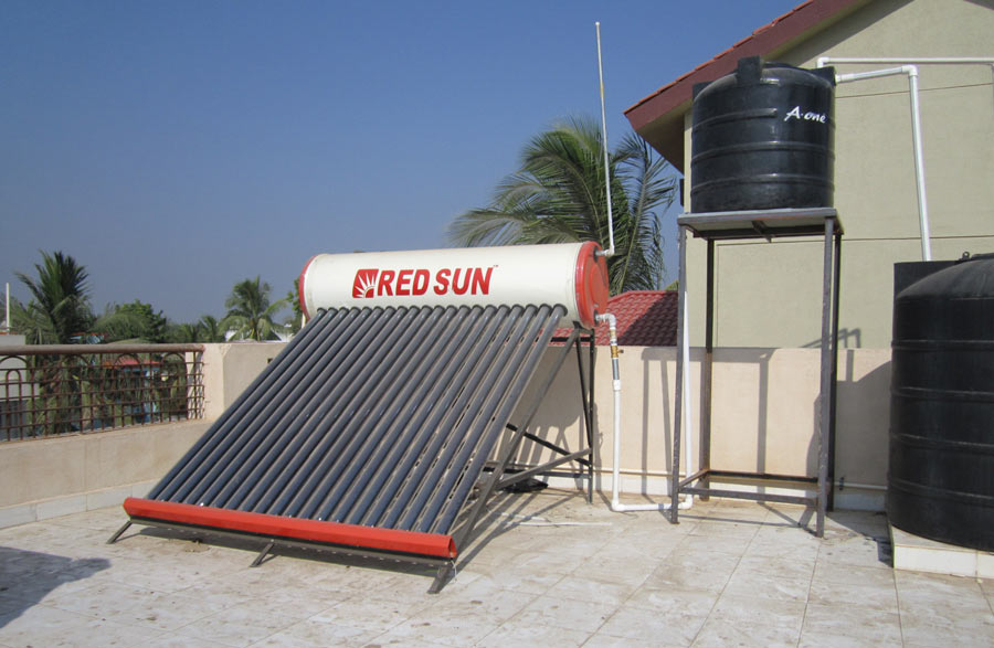 Solar water heater with capacity 300 ltr per day.